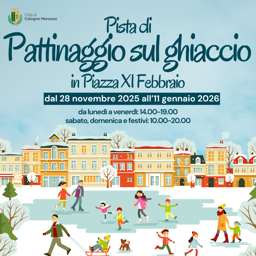 Cologno Monzese si prepara a vivere un Natale ricco di atmosfera e divertimento con il ritorno della pista di pattinaggio sul ghiaccio in Piazza XI Febbraio, aperta dal 28 novembre 2025 all' 11 gennaio 2026.